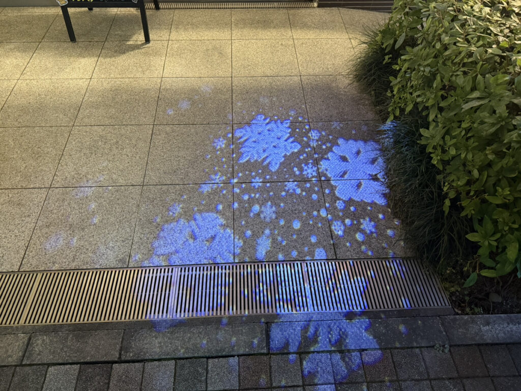 小さいお子さん達がよくこの、地面に投影された雪の結晶を「キャッキャッ」と踏みに来ます^^