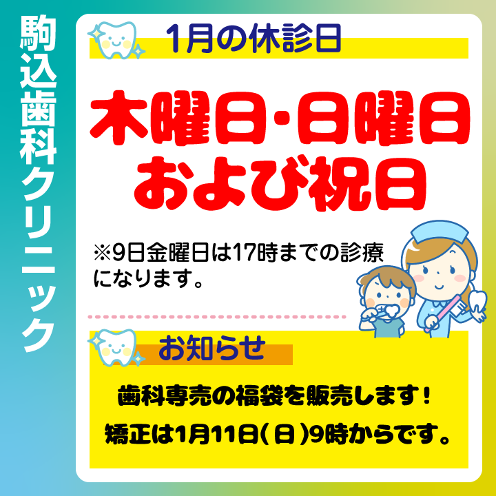 ※年末年始は12月27日(土)は、午前中のみ診療。12月28日(日)~1月4日(日)までお休み頂きます。1月5日(月)から通常診療です。